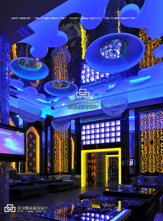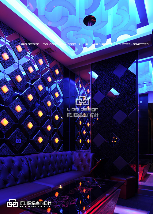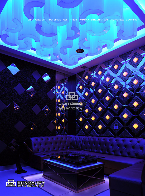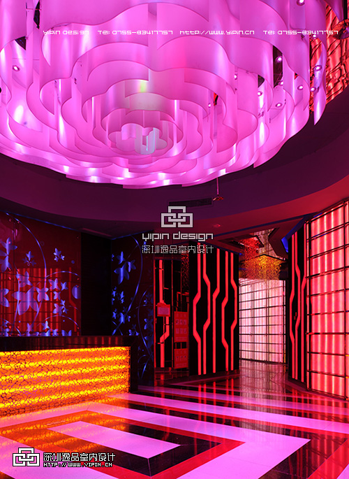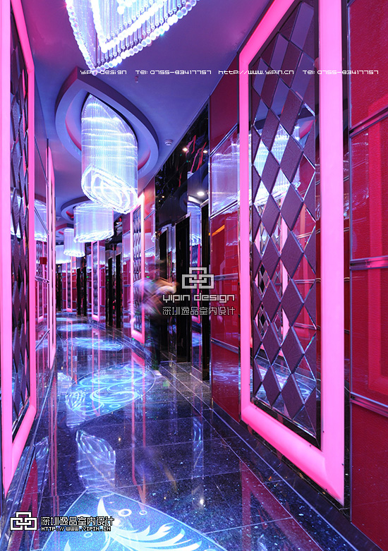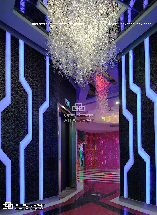 主要材料:压克力透光板,艺术玻璃,墙纸,PVC地板,光纤,LED灯